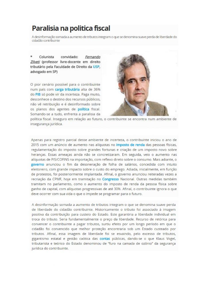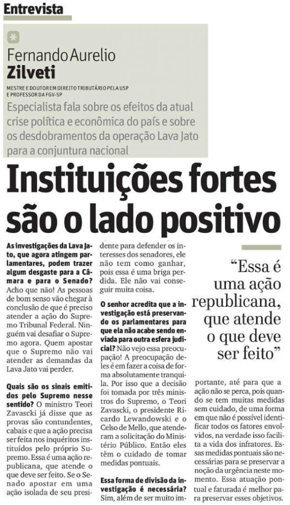 Em entrevista publicada no jornal O Tempo, de Belo Horizonte (MG), Fernando Zilveti fala sobre os efeitos das crises política e econômica do país e os desdobramentos da operação Lava Jato. 23-07-jornal-o-tempo-zilveti